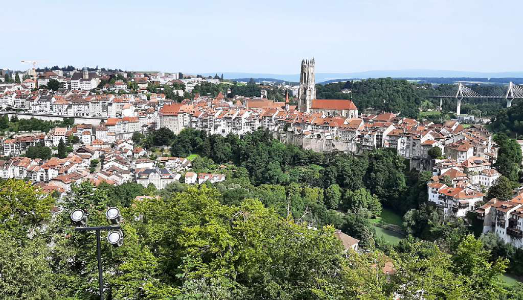 Auch steil hinunter ging’s in das historische Quartier, eingeigelt, unten im Saanegraben, mit den Holzbrücken und verschlungenen Gassen. Ein Besuch dieser einmalig schönen Stadt wäre natürlich auch wegen der vielfältigen Monumente, Museen und Quartiere empfehlenswert: Kathedrale St. Nikolaus, Tinguely-Museum, Gutenberg-Museum, die historischen Brücken und Stege und so weiter.