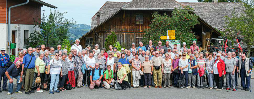 Mit zwei Sägesser-Bussen, beide nahezu voll besetzt, verliess die erwartungsfrohe Reisegesellschaft das Waldenburgertal in Richtung Emmental. Bruno Sägesser und Beat Kaufmann, die beiden Chauffeure, nahmen zuerst Kurs gen Langenthal, die Stadt der Kreisel, wie Bruno Kaufmann sie bezeichnete. Das erste Ziel war Affoltern, bereits im Emmental gelegen, dort in der Schaukäserei war der Kaffeehalt vorgesehen. Unterwegs noch letzte, herrlich blühende Sonnenblumenfelder, die Kürbiszeit ist angebrochen. Die Schwalben sind gen Süden gezogen, ein deutliches Zeichen, dass der Sommer zu seinem Ende gekommen ist.