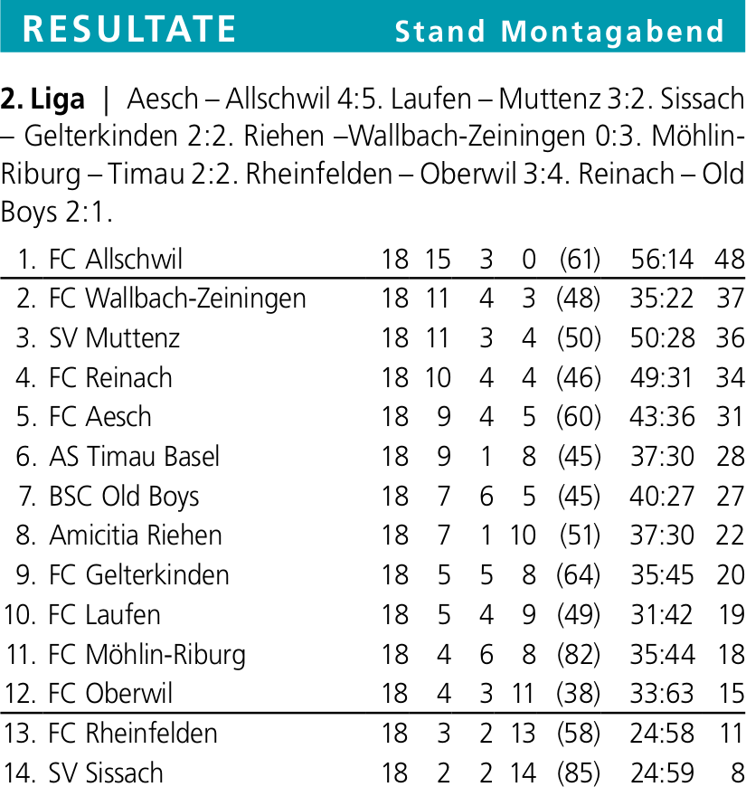 «Klar ist es ärgerlich, wenn der Gegner so kurz vor Abpfiff den Ausgleich erzielt. Jedoch bin ich der Meinung, dass wir nicht enttäuscht sein müssen über unsere Leistung», kommentierte Sissachs Trainer Selim Isenaj die Partie. Seine Mannschaft hätte die drei Punkte dringend gebraucht. Weil Oberwil, das direkt über dem Strich steht, im Kellerduell gegen Rheinfelden mit 4:3 gewann, vergrösserte sich der Abstand Sissachs ans rettende Ufer aus Sicht der Oberbaselbieter auf sieben Punkte.