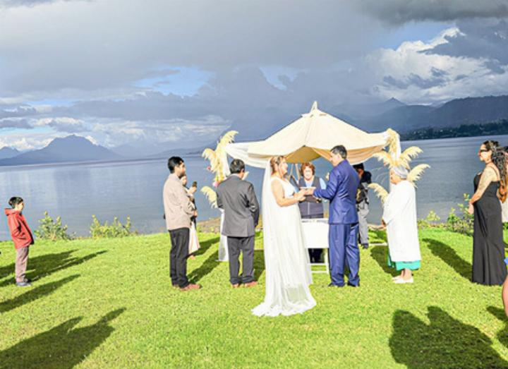 Nach Hagel, Blitz und Donner – von allen als Glückszeichen interpretiert –, konnten sich José und Maria, unsere Partner im Weizen- und Haferprojekt, auf dem aufgeweichten Rasen doch noch das Jawort geben. Beim reichhaltigen Buffet waren die Stilettos bereits währschafterem Schuhwerk gewichen, die nackten Schultern unter Jacken, Ponchos und Pullovern verschwunden. Dem ausgelassenen Feiern konnte das Wetter jedoch nichts anhaben.