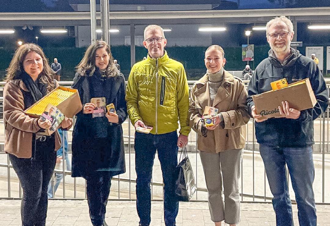 Kälte und grauem Himmel konnten der heiteren Stimmung in der Gruppe nichts anhaben. Viele «Beschenkte» bedankten sich und waren erfreut über die Geste. Markus Eigenmann nahm sich Zeit für kurze Gespräche und betonte, man wolle den Menschen gerade am frühen Morgen etwas Positives mit auf den Weg geben. So war diese Aktion für alle ein gelungener Start in den Tag.