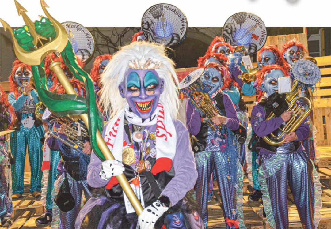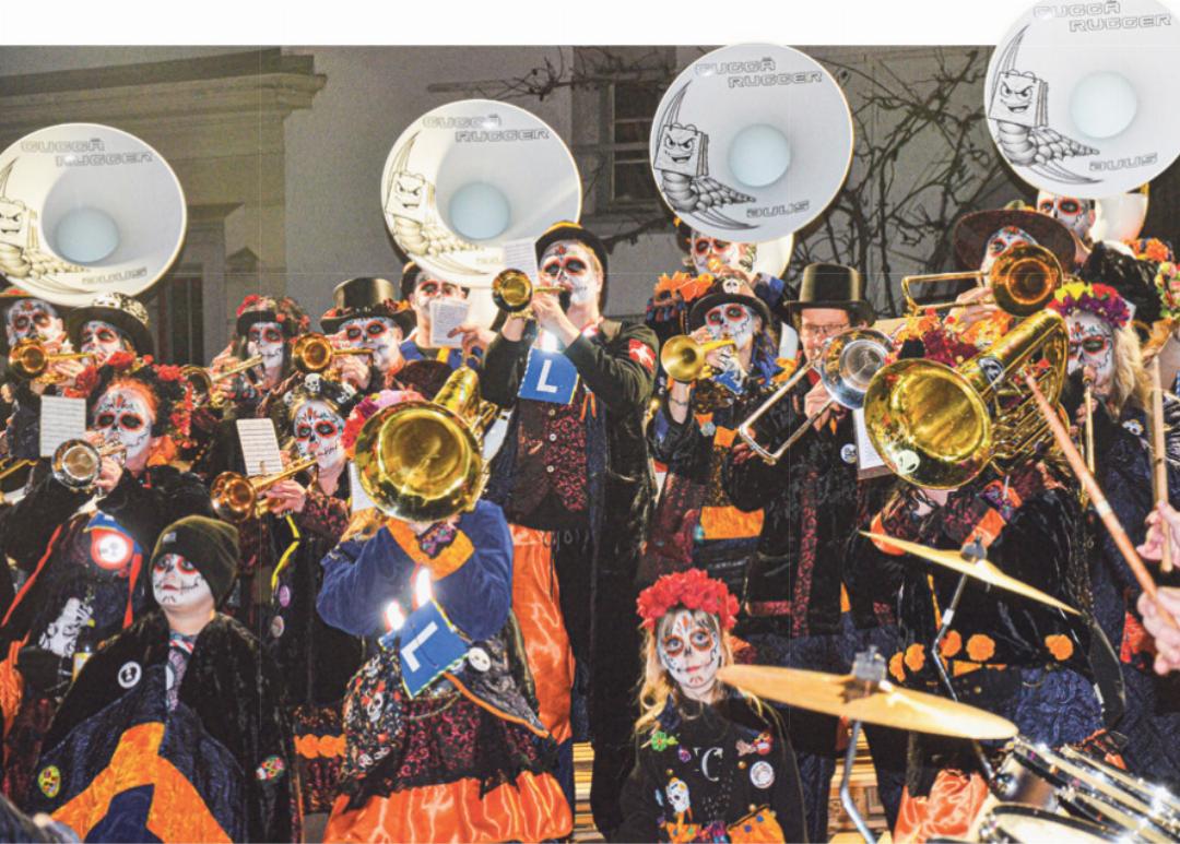 Das Platzkonzert auf dem Dorfplatz ist schon seit vielen Jahren ein beliebter Treffpunkt für Liebhaber der schrillen Klänge und gilt als einer der Höhepunkte und zugleich Abschluss der fünften Jahreszeit in Gelterkinden. D‘Röggli Rueche als Organisatoren hatten es in der Person von Präsident und Moderator Sven Bieder geschafft, nach dem traditionellen Einlaufen der Guggen mit den neun Gastformationen einen Abend lang musikalische Leckerbissen zu präsentieren, die für mehrere Stunden im Zeichen der rhythmusbetonten Guggenmusik standen. «Nur» neun, denn Bieder musste mit Bedauern einige Absagen von sonst «treuen» langjährigen Guggen zur Kenntnis nehmen, wie er der «Volksstimme» sagte. Nichtsdestotrotz erklang die Guggenmusik in schrägen, aber mitreissenden Klängen über das Festareal rund um den Dorfbrunnen und liess niemanden stillstehen.