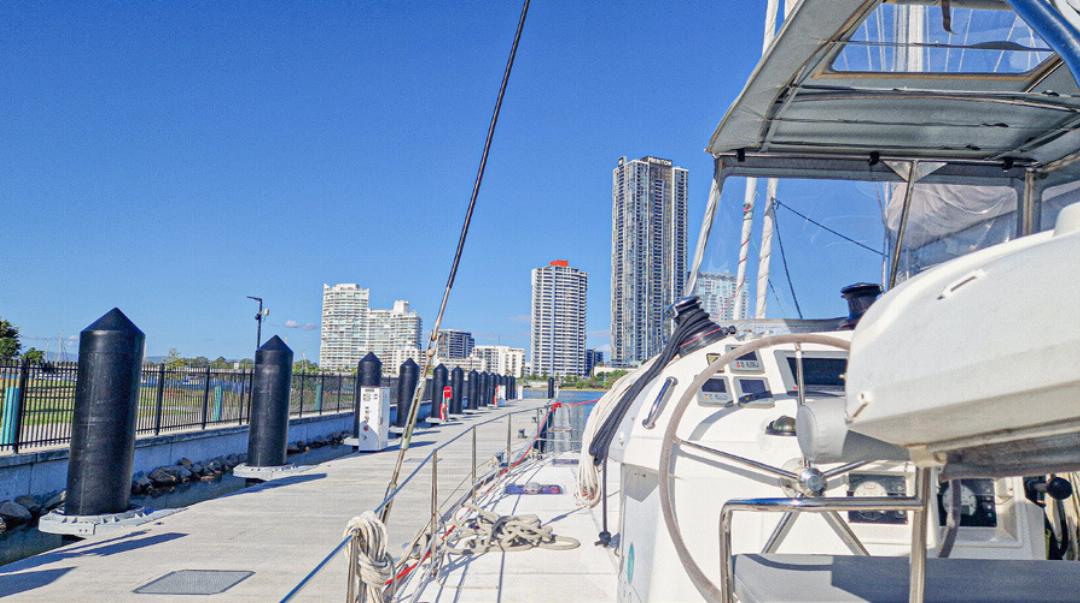 Wir haben etwas über 800 Seemeilen (ca. 1500 Kilometer) hinter uns. Bis zum Southport Yacht Club, einem offiziellen Ersteinreisehafen, sind es noch gut 20 Seemeilen. Wir hissen die gelbe internationale Quarantäneflagge, die zeigt, dass wir aus dem Ausland kommen. In der Nacht legen wir am zugewiesenen Quarantänesteg an. Wir müssen an Bord bleiben, bis das Schiff und wir kontrolliert und freigegeben sind. Am nächsten Morgen um 7.30 Uhr treffen die Beamten ein. Drei von der Australian Border Force, die für Zoll und Immigration zuständig sind, und einer vom Department of Agriculture, Water and the Environment, der für die Biosecurity zuständig ist.