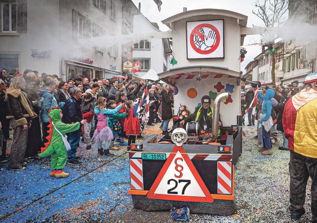 Apropos «Gälti». Zwei Schyssdräckzüügli sind uns aufgefallen. Eines zog mit einem vergoldeten Schlösschen durch Sissach, das sie auf den klingenden Namen «Campus Loggia» getauft haben. Nicht zu verwechseln mit dem Schulhausprojekt, über das an der Urne noch abgestimmt wird. Nicht minder aktuell das Sujet der Luuser Rueche (Gelterkinden). Weil es in ihrem Dorf, sieht man von Dönerbuden und Pizza-Takeaways ab, nur noch zwei klassische Restaurants gibt, sind sie fortan mit ihrer eigenen Beiz unterwegs. Diese umfasste ein Buffet mit Zapfhahnen, die Gaststube mit Tisch und Stühlen sowie einen Käsewagen. Wir sagen das als Sissacher ja nicht gerne, aber das war ein ganz starker Auftritt unserer Freunde im Osten.