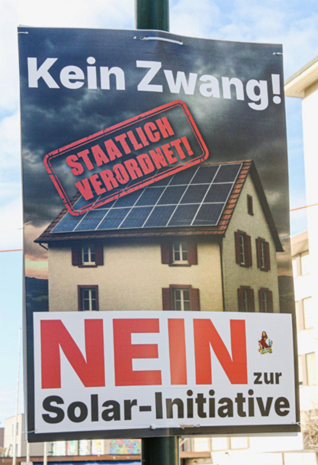 Mit dem Plakat der Gegner ist D’Agostini wenig zufrieden: Darauf sei viel zu viel geschrieben und es sei kein Fokus erkennbar. «Geht es hier um die Prämienabzugsinitiative oder die Individualbesteuerung? Die Verwechslungsgefahr für einen Stimmbürger wie mich, der sich erst spät informiert, ist gross.» Wenn man D’Agostini zuhört, hätte die SP auf dieses Plakat verzichten können. Um sich die Botschaft merken zu können, müsse man es vier- bis fünfmal gesehen haben. «Bei den Plakaten der Solarinitiative-Gegner reicht ein kurzer Blick.»