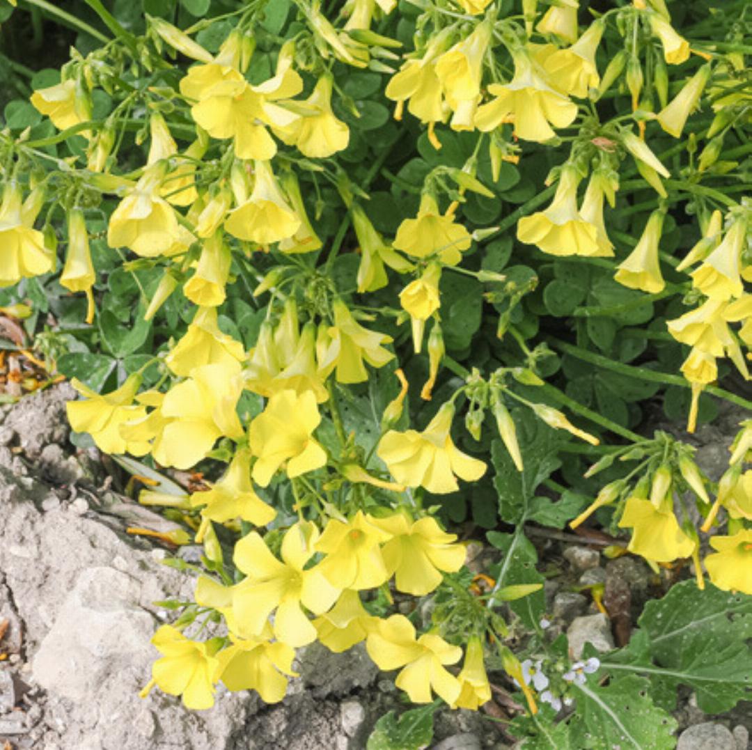 Sauerklee | Die über 500 Sauerkleearten sind fast auf der ganzen Welt zu finden. Viele Arten haben sich zum Teil, dank dem globalisierten Handel, weit über ihr Ursprungsgebiet hinaus verbreitet, so auch bei uns auf Kieswegen und Hausplätzen oder in Sizilien in fast allen Wiesen oder Olivenhainen. Besonders viele Arten gelangen über die Erde von Topfpflanzen direkt in unsere Gärten. Die einheimische Art ist der Hasenklee oder Wald-Sauerklee, der im Wald wächst. In Sizilien leuchten jetzt die Blüten des aus Südafrika stammenden Nickenden Sauerklees. Er ist so dominant wie unser Löwenzahn und leuchtet intensiver. Alle Sauerklee-Arten sind keine echten Klee-Arten aus der Familie Schmetterlingsblütler, sondern stammen aus der Familie der Oxidalic daceae. Sie werden so genannt, weil sie sehr viel Oxalsäure enthalten.