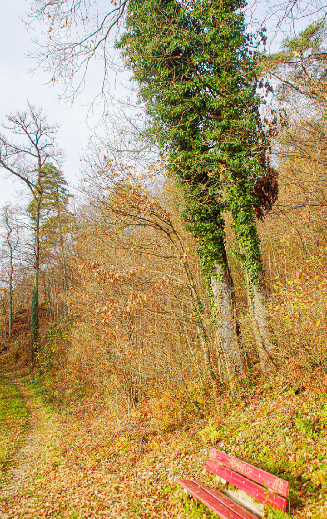 Abgestorbene und dürre Bäume gefährden den Themenweg unter der Roten Flue. Der Gemeinderat hat deshalb einen Abschnitt gesperrt. Weil der Weg eine Naturschutzzone tangiert, sind Eingriffe nur eingeschränkt möglich.