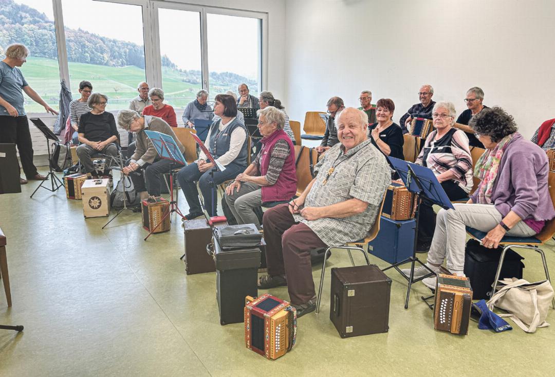 Vom 16. bis 18. Oktober fand in Rickenbach im Haus Waldegg ein «Schwyzerörgeli»-Seminar der Grossformation Tschoppehof unter der Leitung von Simon Dettwiler statt. Das erste Mal konnten auch externe «Örgeli»-Spielerinnen und -spieler daran teilnehmen. Die «Grossformation Tschoppehof» trifft sich alle zwei Wochen an einem Montagabend in Zunzgen zur Probe und hat viele Auftritte.