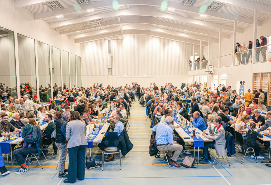 Dass auch die Bevölkerung hinter dieser nicht ganz billigen Halle steht, zeigte sich nicht nur an der Abstimmung vor fünf Jahren, als die 8,5 Millionen Franken gesprochen wurden, sondern auch daran, dass die Bürgergemeinde das gesamte verbaute Holz gespendet hat. Zur Einweihung kam die Bevölkerung in Scharen, sodass eine Besucherin bemerkte, man hätte die Halle gut eine Tischbreite weiter bauen können.