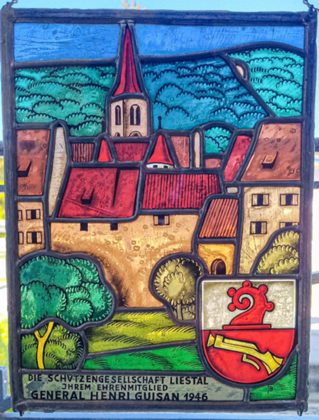 Im ehemaligen Wohnhaus von General Henri Guisan in Pully hängt bis heute eine Wappenscheibe aus Liestal. Das Geschenk der Schützengesellschaft Liestal erinnert an die Ehrenmitgliedschaft des Generals im Jahr 1946.