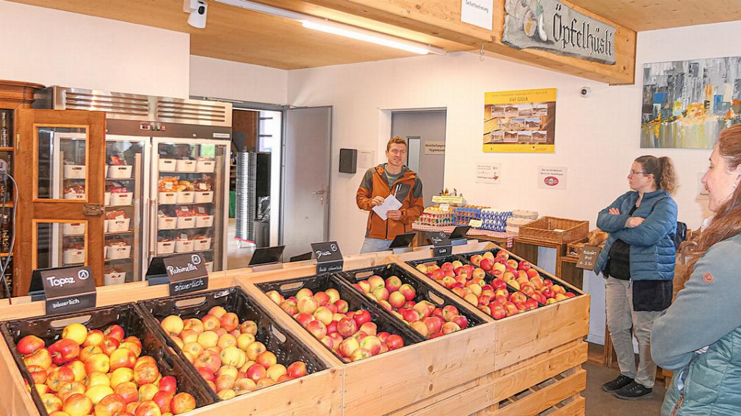 Einige Mitglieder des Baselbieter Obstverbands bieten ihre Produkte in ihren Hofläden an. Sie liessen sich im «Öpfelhüsli» über eine erfolgreiche Direktvermarktung orientieren.