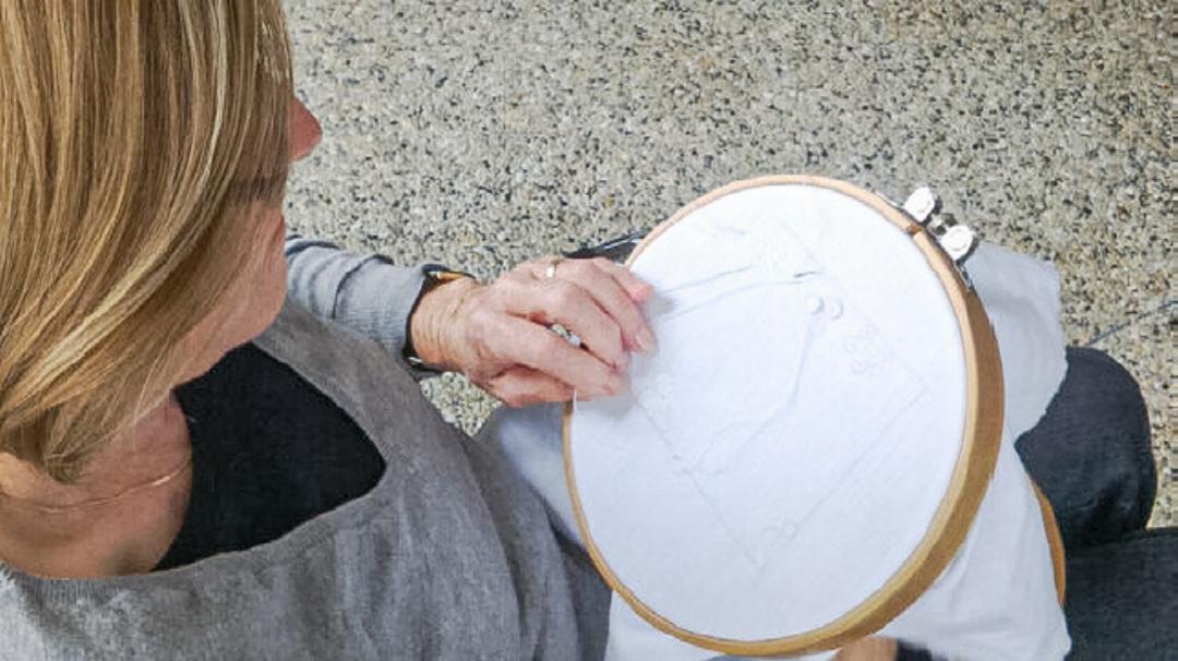 Edith Bergamin besuchte vor 28 Jahren den Stickunterricht an der Berufs- und Frauenschule Basel. Sie lernte dort auch, diese traditionelle Leinenstickerei auf moderne Art umzusetzen. Was früher als Schmuck für Tischtücher, Servietten oder Taschentücher – für die sogenannte «Aussteuer» von Frauen