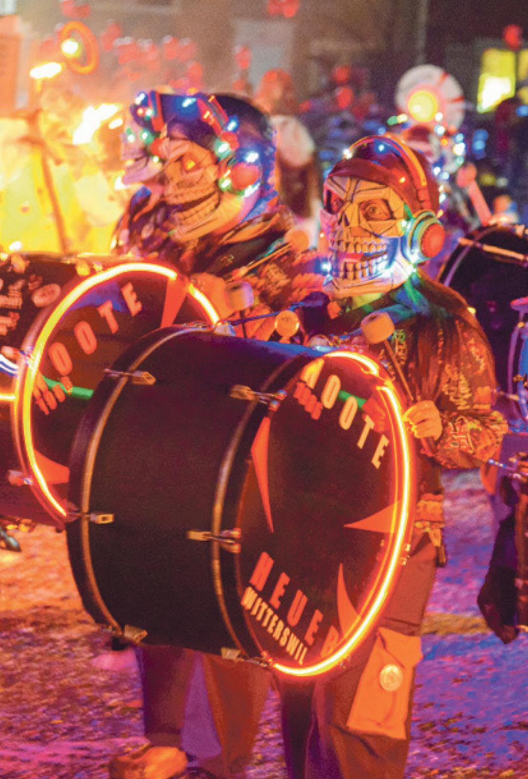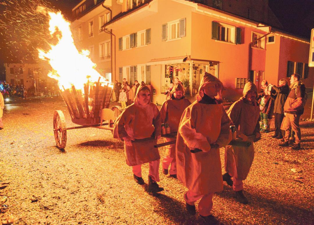 Der Fackel- und Laternenumzug hat sich vom Geheimtipp zum viel beachteten Bestandteil der Sissacher Fasnacht gemausert. Die bis in den späten Abend freundlichen Temperaturen sorgten am Sonntagabend dafür, dass die Begegnungszone abschnittweise noch gestossen voll war, als die Lichter im Dorf erloschen und die Flammen der Chienbäsen, Fackeln und Feuerwagen Sissach erhellte. In den Umzug reihten sich neben den Hauptakteurinnen und -akteuren und den traditionellen Pfeifern und Tambouren in jüngerer Vergangenheit auch Guggen ein, manche von ihnen mit Lichteffekten an Instrumenten und Kostümen.