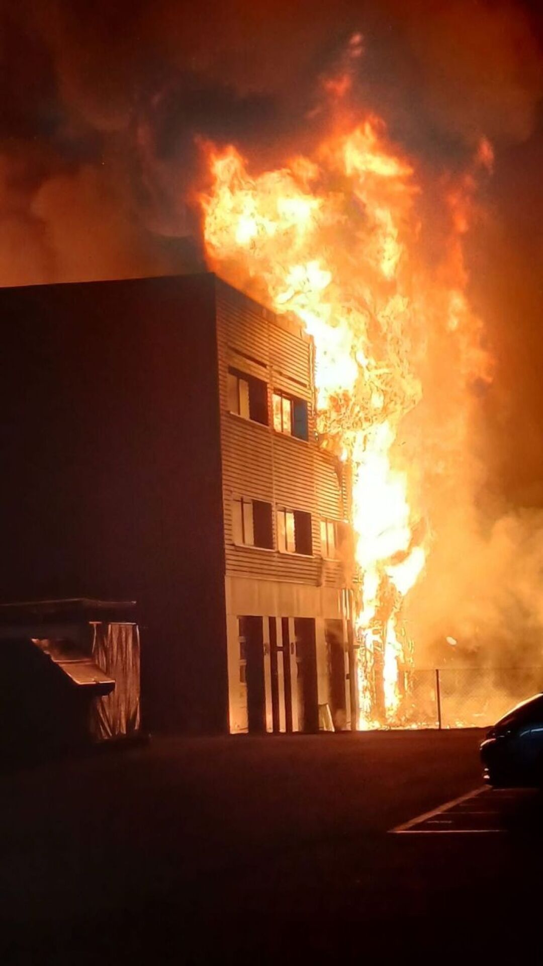Eine Polizeipatrouille, die zu einem anderen Einsatz unterwegs war, entdeckte am Montag Morgen um ca. 4 Uhr die Flammen im Gewerbehaus an der Wattwerkstrasse, östlich der Migros unmittelbar an den Geleisen der Waldenburgerbahn. Die Behörden warnten mit einem Alarm auf Alertswiss; das Tal war nördlich der Brandstelle bis nach Liestal weit in den Morgen hinein mit dickem Rauch gefüllt. Asche und Brandrückstände waren auf den Feldern bis zum Hof Obere Wanne zu sehen.