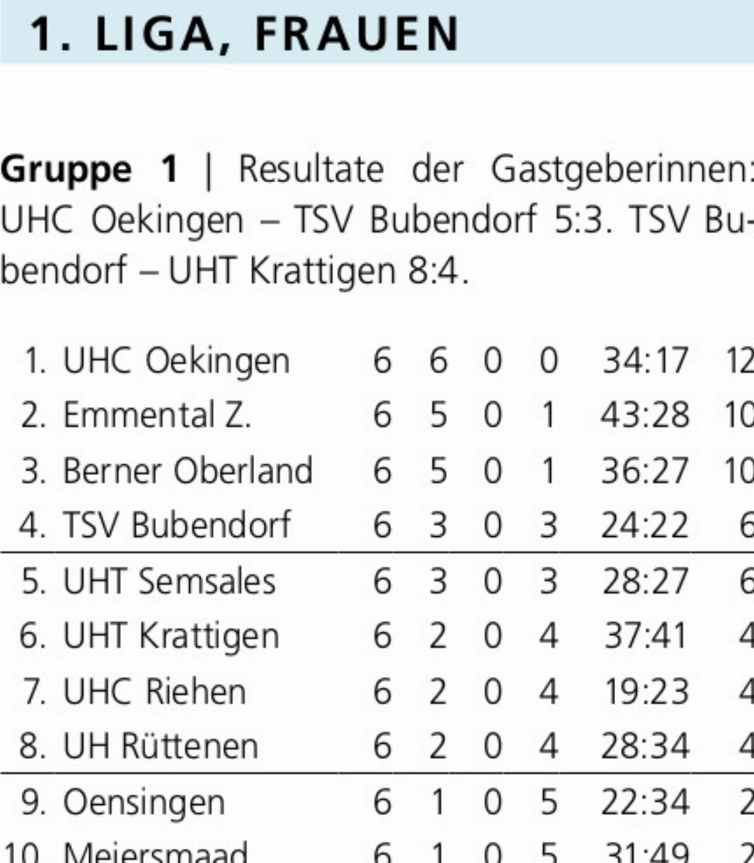 Der TSV Bubendorf hat vor eigenem Publikum eine starke Leistung gezeigt: Nach einer knappen 3:5-Niederlage gegen Tabellenleader Oekingen fand das Team mit einem überzeugenden 8:4-Sieg gegen den UHT Krattigen eindrucksvoll zurück.