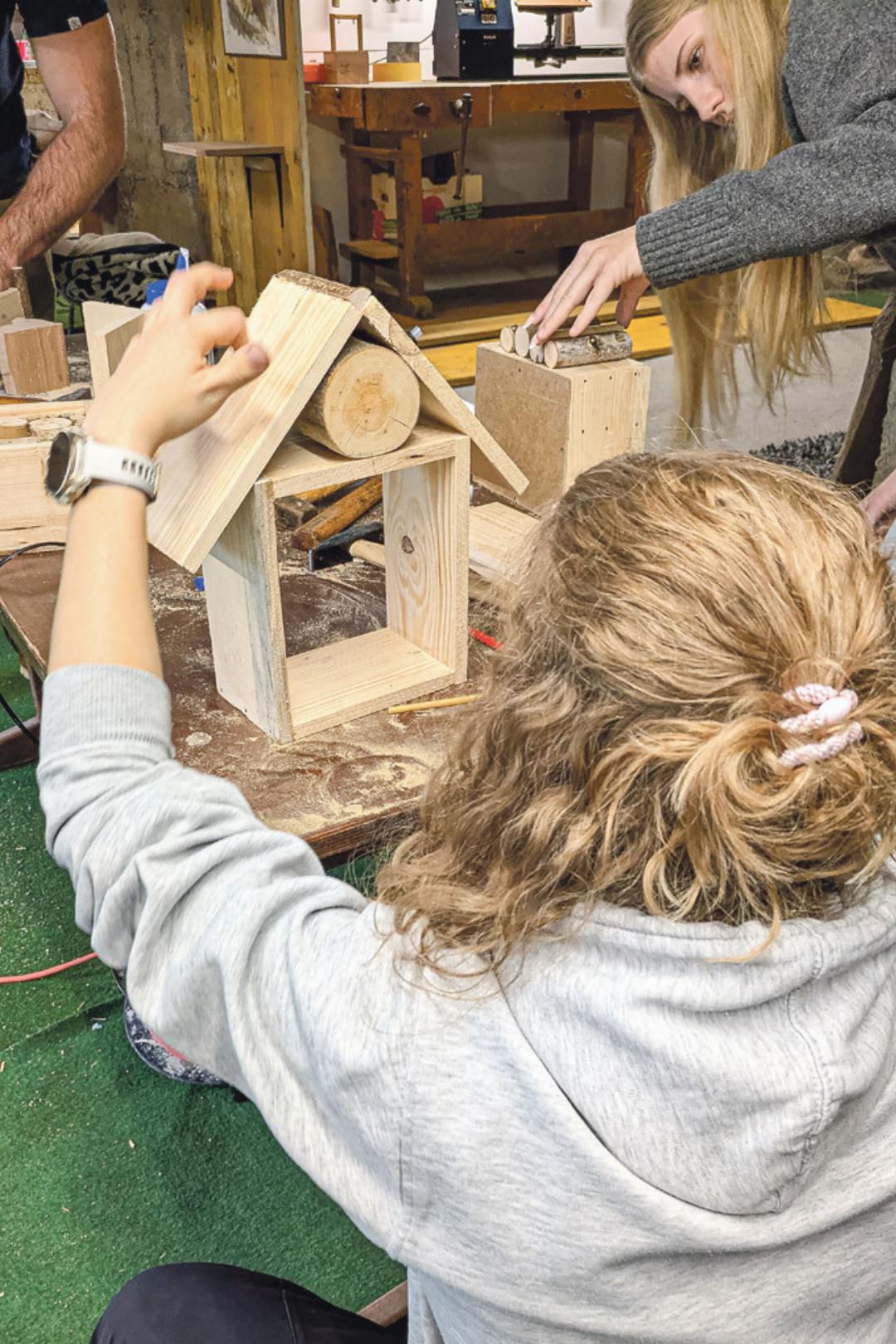 Es hämmert und klopft in der «Chornschüüre» auf dem Sichternhof, der Werkstatt des Natur- und Vogelschutzes Liestal: Mitarbeiter des Reisebüros «Kuoni» verbringen heute einen Firmen-Tag bei uns und bauen Insektenhotels.