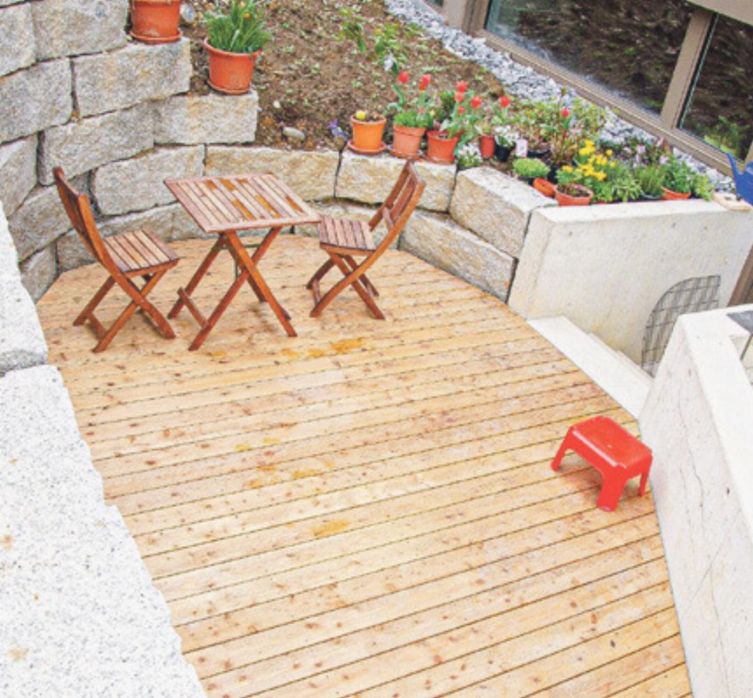 Ihr Garten ist eine Oase der Entspannung und ein Treffpunkt für Grillpartys mit Freunden und Familie. Geniessen Sie die Sonne, erholen Sie sich ganz einfach beim süssen Nichtstun und tanken Sie neue Kräfte. So machen Sie Ihre Terrasse zu einem Kraftort. Wir nden mit Ihnen die passenden Lösungen für schöne Terrassenböden aus langlebigen und edlen Holzarten.