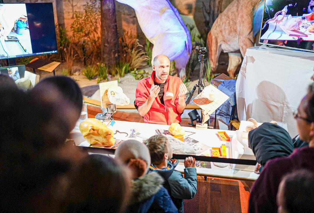 Zu den weiteren Attraktionen gehört dieses Jahr unter anderem eine Live-Präparation eines Dinosauriers. Es handelt sich dabei um ein Skelett eines Langhalssauriers für den Neubau, sagte Basil Thüring, Co-Direktor des Naturhistorischen Museums Basel, vorige Woche vor den Medien. Dieses sei für den neuen Museumsstandort im St. Johann bestimmt.