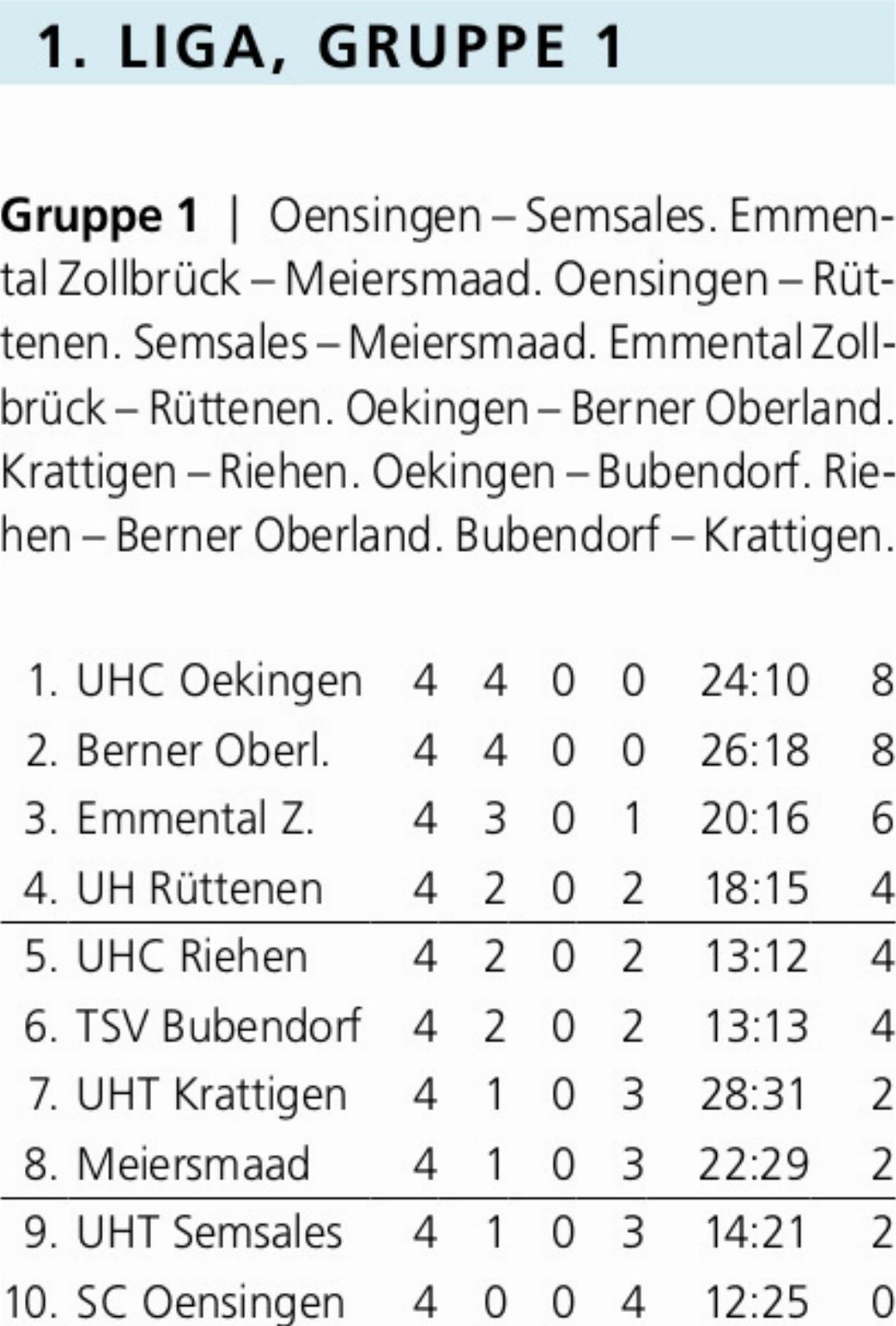 In der Liga ist die Bilanz vor der Heimrunde vom Sonntag ausgeglichen: zwei Siege, zwei Niederlagen, Rang 6. Würden die Gastgeberinnen in der Sporthalle Sappeten gegen Vorjahresfinalist Oekingen (15.25 Uhr) und Vorjahreshalbfinalist Krattigen (17.15 Uhr) zwei Punkte holen, wäre Dolder zufrieden – «aber es dürfen natürlich auch mehr sein.»