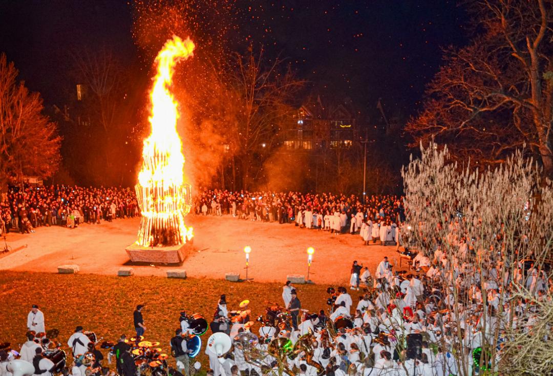 Mit den Worten «Aadie Chluuri, aadie Fasnecht!» wurde das «Chluuri» dem Feuer übergeben. Das Feuer zögerte anfänglich etwas. Doch dann stand das «Chluuri» innert Sekunden im Vollbrand.