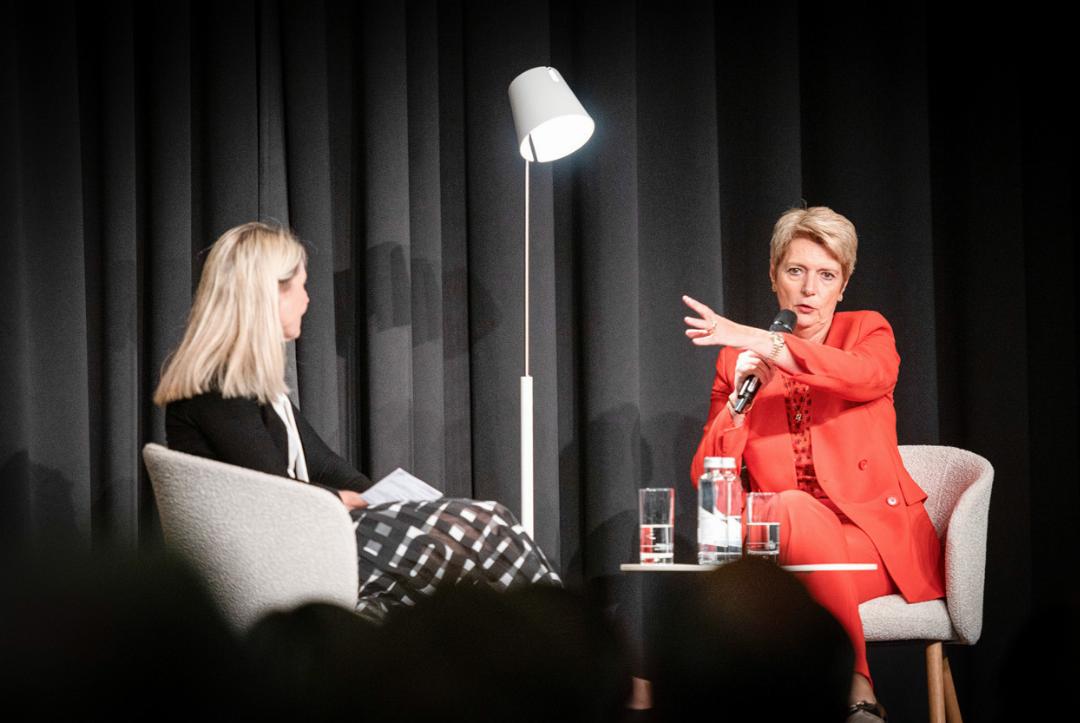 Generell gab sich die 62-jährige Magistratin aus der Ostschweiz, der der Ruf einer «Hardlinerin» vorauseilt, nahbar: Vor dem Gespräch mischte sie sich unters Publikum und posierte für das eine oder andere Selfie. «Leute zu treffen, ist immer etwas Erfreuliches», erzählte Keller-Sutter später auf der Bühne im Gespräch mit Moderatorin Anita Crain. Der Kontakt mit Menschen sei Teil eines abwechslungsreichen und vollgetakteten Alltags als Bundesrätin. Diesen wie von Crain vorgeschlagen mit einer Kamera zu filmen, wäre dennoch ziemlich langweilig, fand Keller-Sutter: «Wir arbeiten einfach.»
