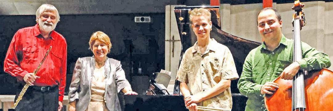 vs. Eine der Organistinnen der Kirchgemeinde Schafmatt-Wisenberg, Erzsèbet Achim, wächst über sich hinaus und widmet sich am Sonntag innerhalb des Kornberg Jazz-Quartetts ganz anderen Klängen. Das Profi-Ensemble besteht aus Klaus Wloemer (Flöte), Erzsèbet Achim (Klavier), Tobias Rüedi (Schlagzeug) und Leonardo de Assis (Kontrabass).