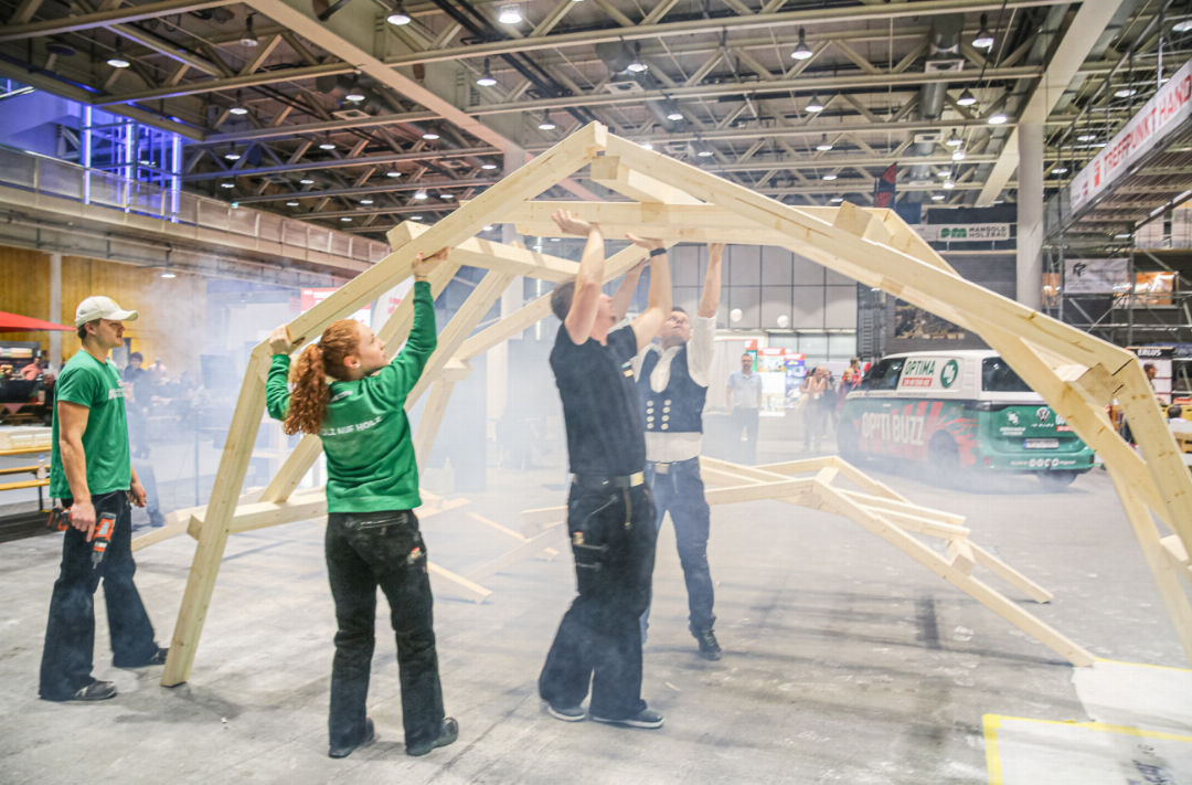 Für PM Mangold ist Ausbildung zentral: Aktuell beschäftigt das Unternehmen 27 Lernende. Deshalb war es Schreiber ein Anliegen, dass auch die Lernenden in den Auftritt in Basel integriert werden. So zeigen Svenja Zurfluh und Tyler Kamann live vor Ort gemeinsam mit zwei Betreuern zwei typische Zimmermannsarbeiten: die Herstellung eines Zimmermannknotens und einer Leonardo-Brücke, eines selbsttragenden Bogenkonstrukts aus Holz.