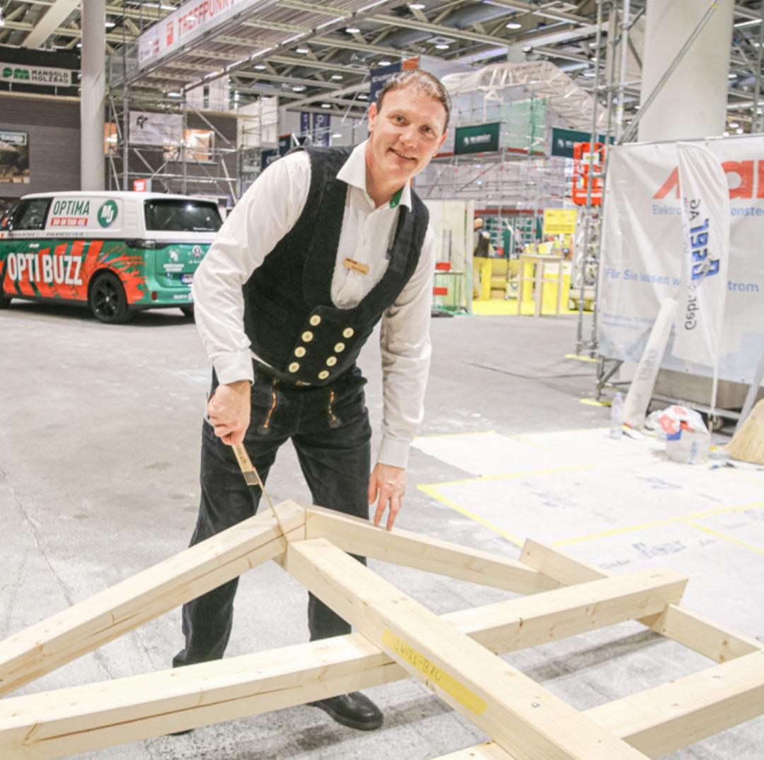 PM-Mangold-Geschäftsführer David Schreiber erklärt den Ansatz: «Wir sind zum zweiten Mal an der Messe dabei. Letztes Mal erhielten wir – obwohl wir nur einen kleinen Infostand hatten – viele konkrete Aufträge von Privatpersonen. Das motivierte uns, dieses Jahr mit dem Haus präsent zu sein.»