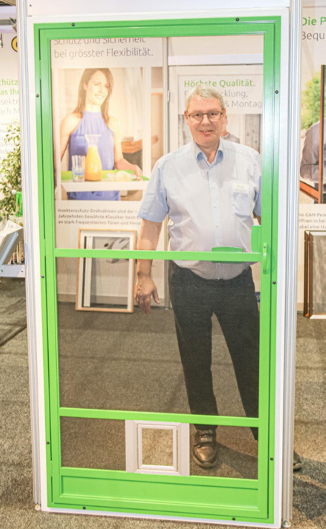 Noch bevor die Messe um 9 Uhr öffnet, beginnt der Rundgang. Mit dem Hallenplan in der Hand gehts zuerst zum Stand der G&H Insektenschutzgitter GmbH aus Buckten. Das Messeteam ist vollständig vor Ort, die Produkte montiert, die Präsentation steht. Bevor der Besucherstrom einsetzt, bleibt Zeit für ein erstes Gespräch – und für den Start des Rundgangs.