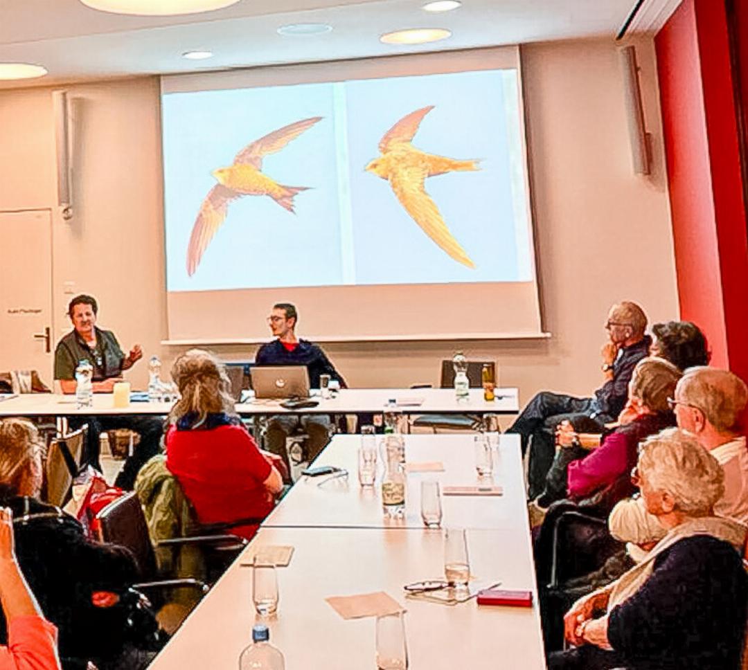 Besonders erfreulich ist das Engagement zahlreicher Mitglieder; sei es bei Einsätzen zugunsten der Natur, als Nistkasten-Revierverantwortliche oder zunehmend im Bereich Gebäudebrüter. Im Anschluss an die Traktanden stellte ein Dreierteam bestehend aus Lars Conzett, Stephan Kaiser und Kuri Wirz das Programm Population Monitoring (Popmon) vor. Im Rahmen einer Erhebung zum Thema Gebäudebrüter wurde in den vergangenen Monaten ein grosser Effort im Erweitern von Brutmöglichkeiten für die verschiedenen Schwalbenarten sowie Mauersegler (Spyren) geleistet. Es wurden bestehende Kolonien entdeckt und neue Gebäude gefunden, an denen mehr als 90 neue Nisthilfen geschaffen wurden. Auch bei der Förderung der Wasseramseln sowie bei den Kauzen ist grosses Engagement im Gange.