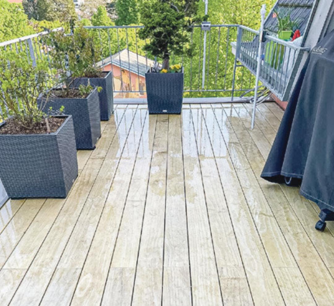 Entspannung, Erholung, pures Ferienfeeling – genau diese Emotionen werden geweckt, wenn man sich auf einem Holzdeck bewegt oder ausruht. Sie haben ein Terrassendeck und möchten dieses für die kommende Garten- und Grillsaison rüsten? Lehnen Sie sich entspannt zurück und lassen Sie Ihr Holzdeck professionell durch uns reinigen und pflegen – nachhaltig, porentief und trotzdem materialschonend. Auch in der Planung und Umsetzung von neuen Terrassendecks sind wir stark. Holzdecks eignen sich für Terrassen, Balkone, Gartenanlagen oder Poolumrandungen.