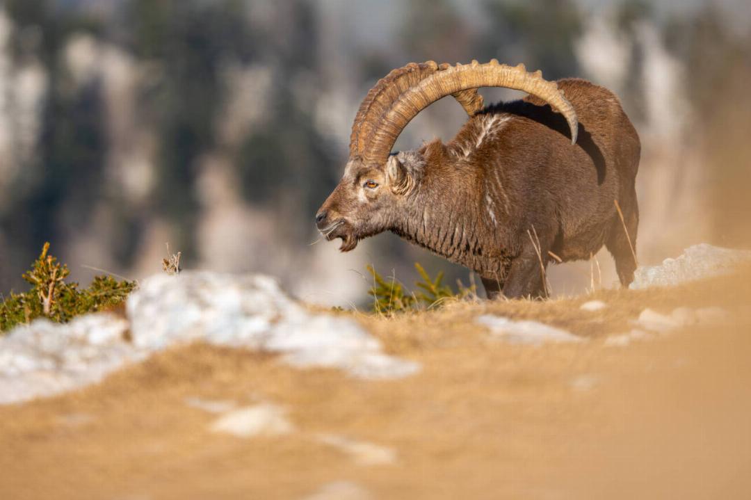 Tierfotograf Jan Furler aus Bubendorf hat einen Steinbock angetroffen, der die warme Mittagssonne nach einem eisigen Morgen geniesst.