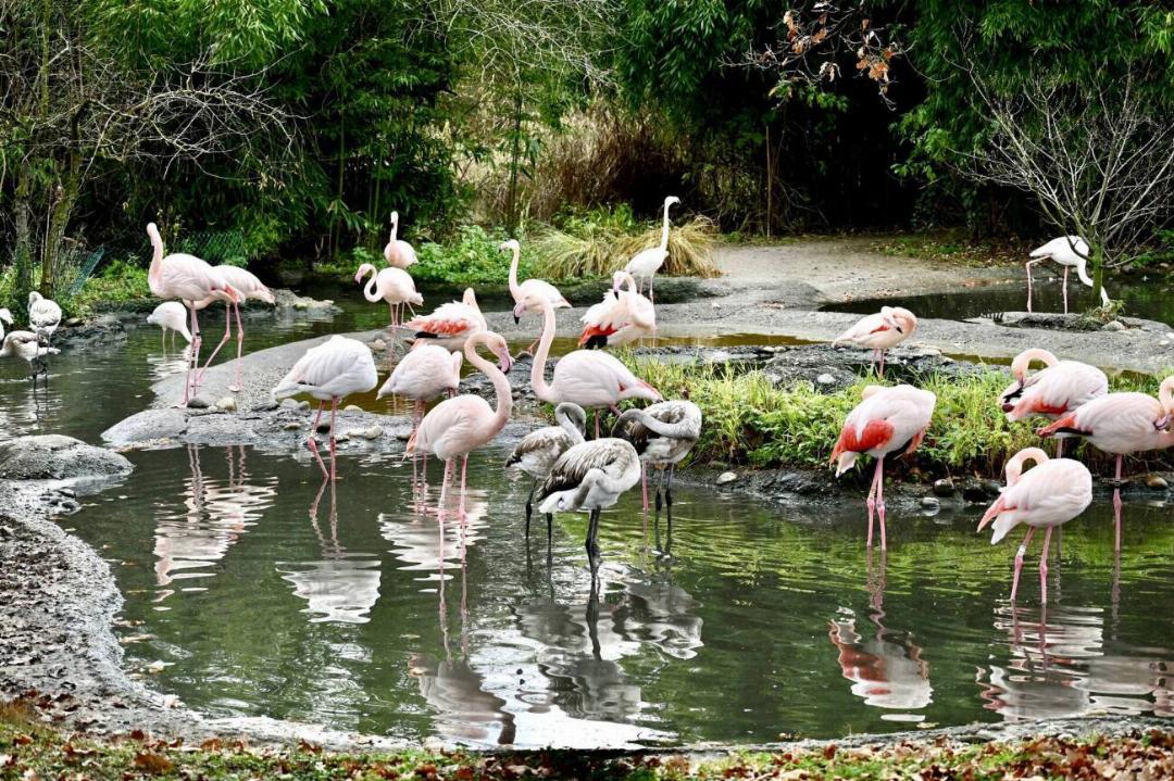 Eugen Schwarz aus Oberdorf fotografierte die Flamingos im Basler Zoo, während sie ihr Federkleid putzten.