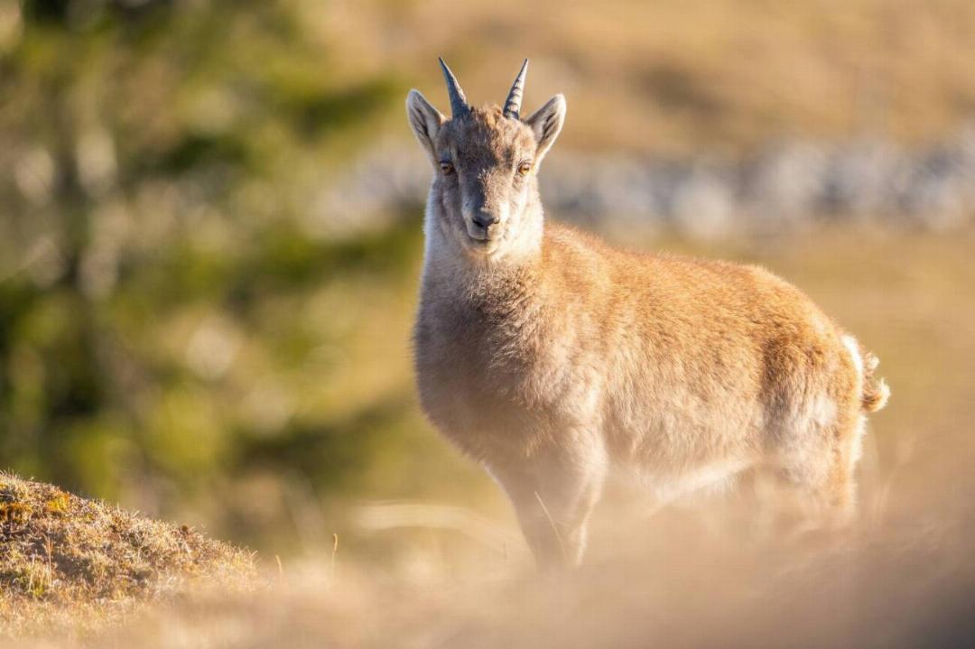 Ein junger Steinbock blickt neugierig umher und weiss nicht so recht, was Jan Furler aus Bubendorf von ihm will. Doch Steinbock hat alles richtig gemacht und blickt in die Linse!
