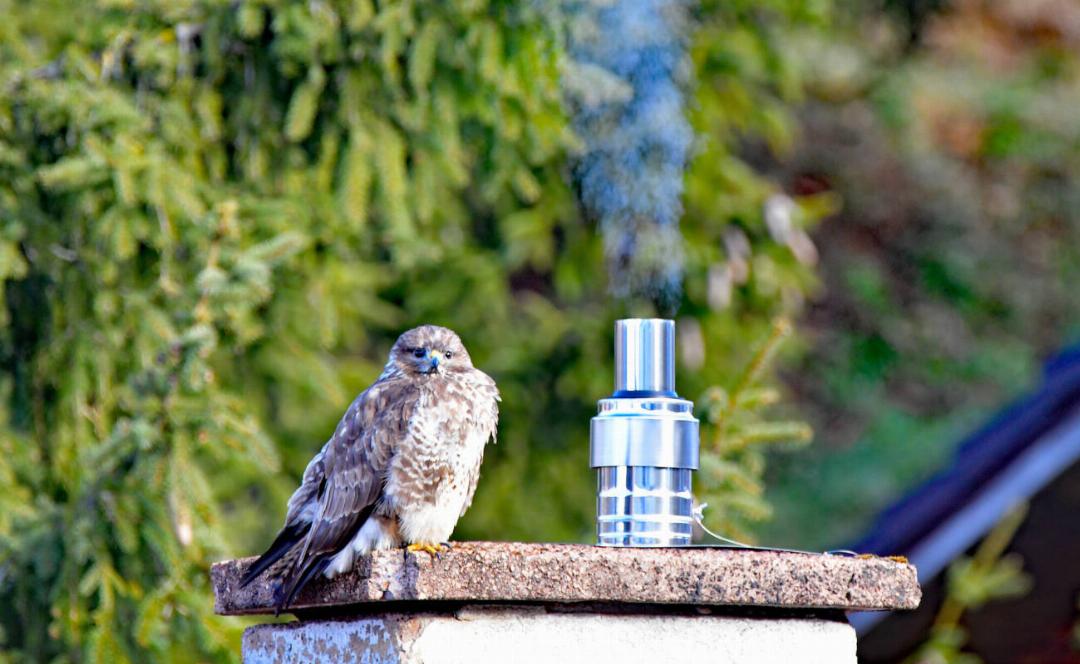 Als Aussichtspunkt hat sich dieser Bussard einen Schornstein ausgesucht. Fotografiert wurde er von Franz Schweizer aus Bretzwil.