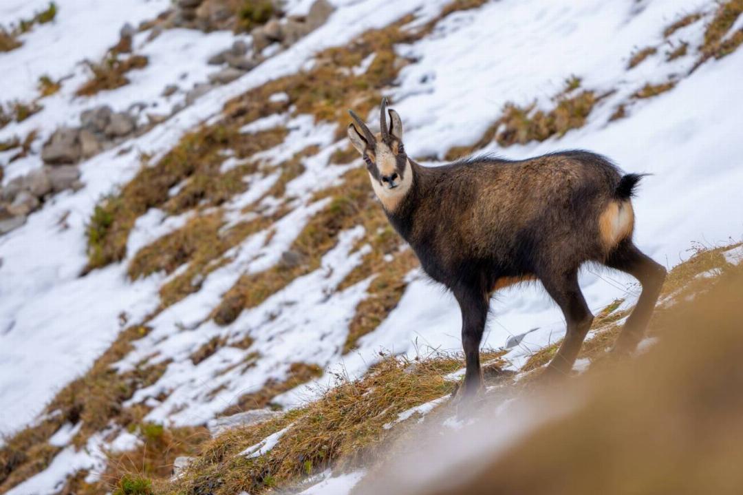 Zwischen den weissen Inseln des ersten Winterschnees hat Jan Furler aus Bubendorf in den Bergen der Region Pilatus diesen Gamsbock entdeckt und festgehalten.