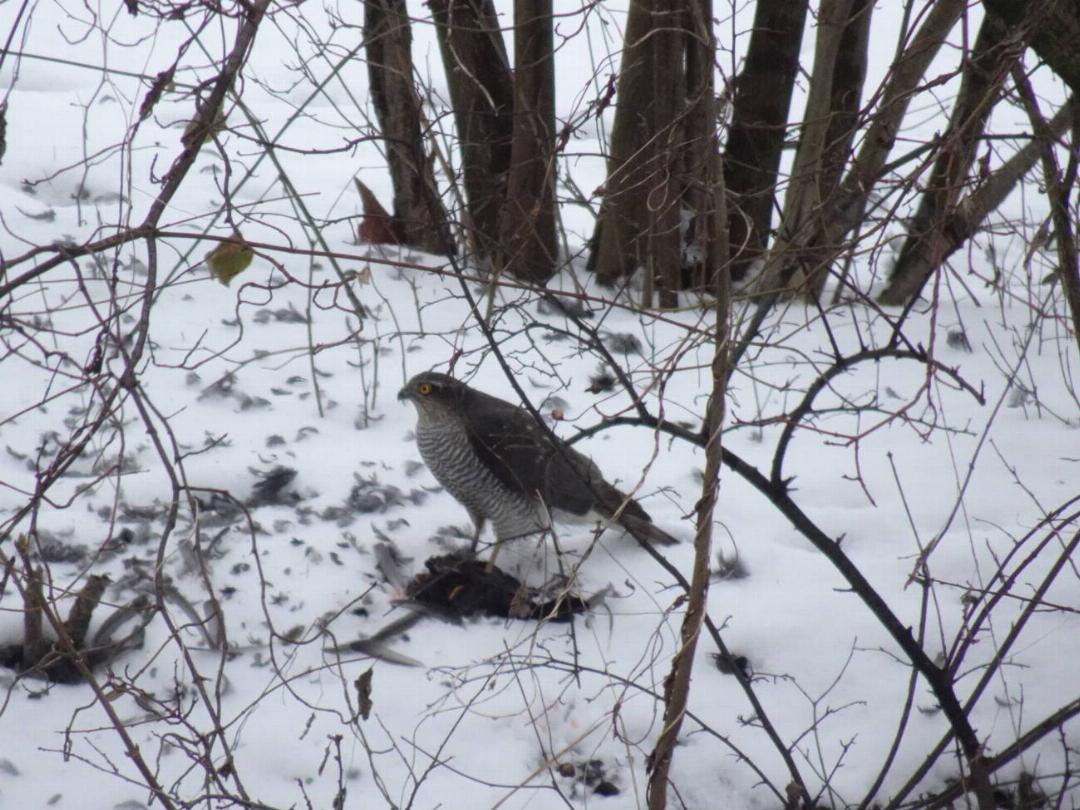 Diesen seltenen Schnappschuss eines Sperbers, der eine Amsel erbeutet, hat Loretta Grieder aus Zeglingen aufgenommen.