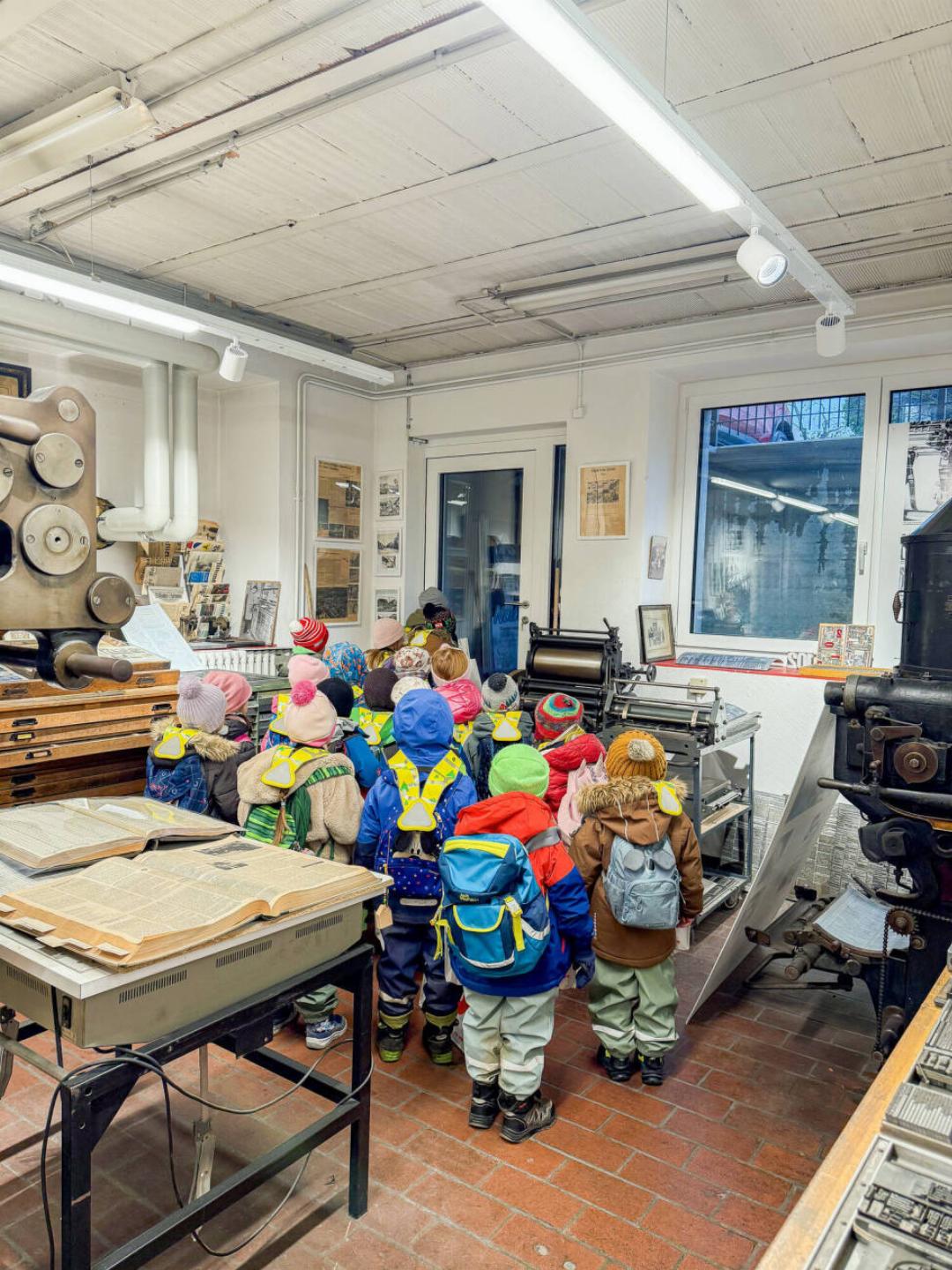 "Mit grossen Augen bestaunten die kleinen Druckprofis die grossen Maschinen der Schaub Medien AG, stellten neugierige Fragen und staunten über Farbe, Papier und ganz viel Technik", schreibt Jasmin Weisskopf-Schaub aus Böckten.