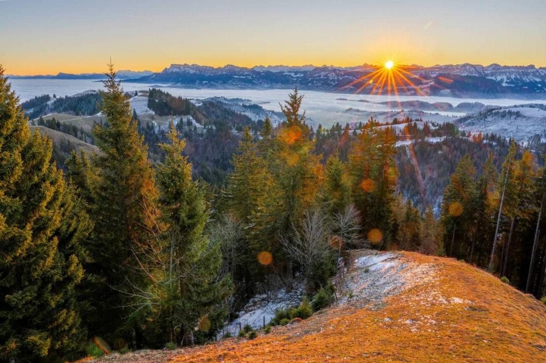 Hinter dem Niesen im Berner Oberland kam die Sonne hervor und strahlte direkt in die Kamera von Res Thomet aus Diegten.