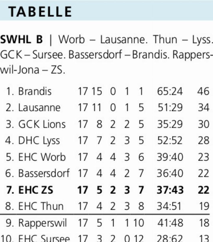 Ein Zurückfallen auf Rang 8 sollte auch bei einem Sieg Thuns für ZS nicht mehr möglich sein: In den Direktduellen mit Thun und mit dem möglicherweise ebenfalls punktgleichen Bassersdorf hat ZS mehr Punkte geholt.