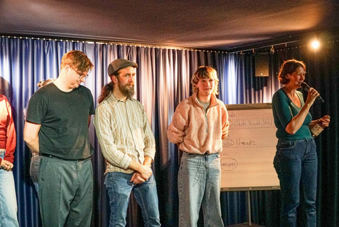 Rea Köppel, die den Abend moderierte, machte bereits zu Beginn klar, dass es sich nicht um einen normalen Poetry-Slam handeln würde. Zur Erinnerung: Bei einem Poetry-Slam treten Personen mit eigenen Texten auf. Auf der Bühne haben sie sechs Minuten Zeit, ihren Text aufzusagen. Sie dürfen sich nicht verkleiden und weniger als die Hälfte des Textes darf gesungen werden. Normalerweise werden Tafeln mit Notenblättern von eins bis zehn im Publikum verteilt.