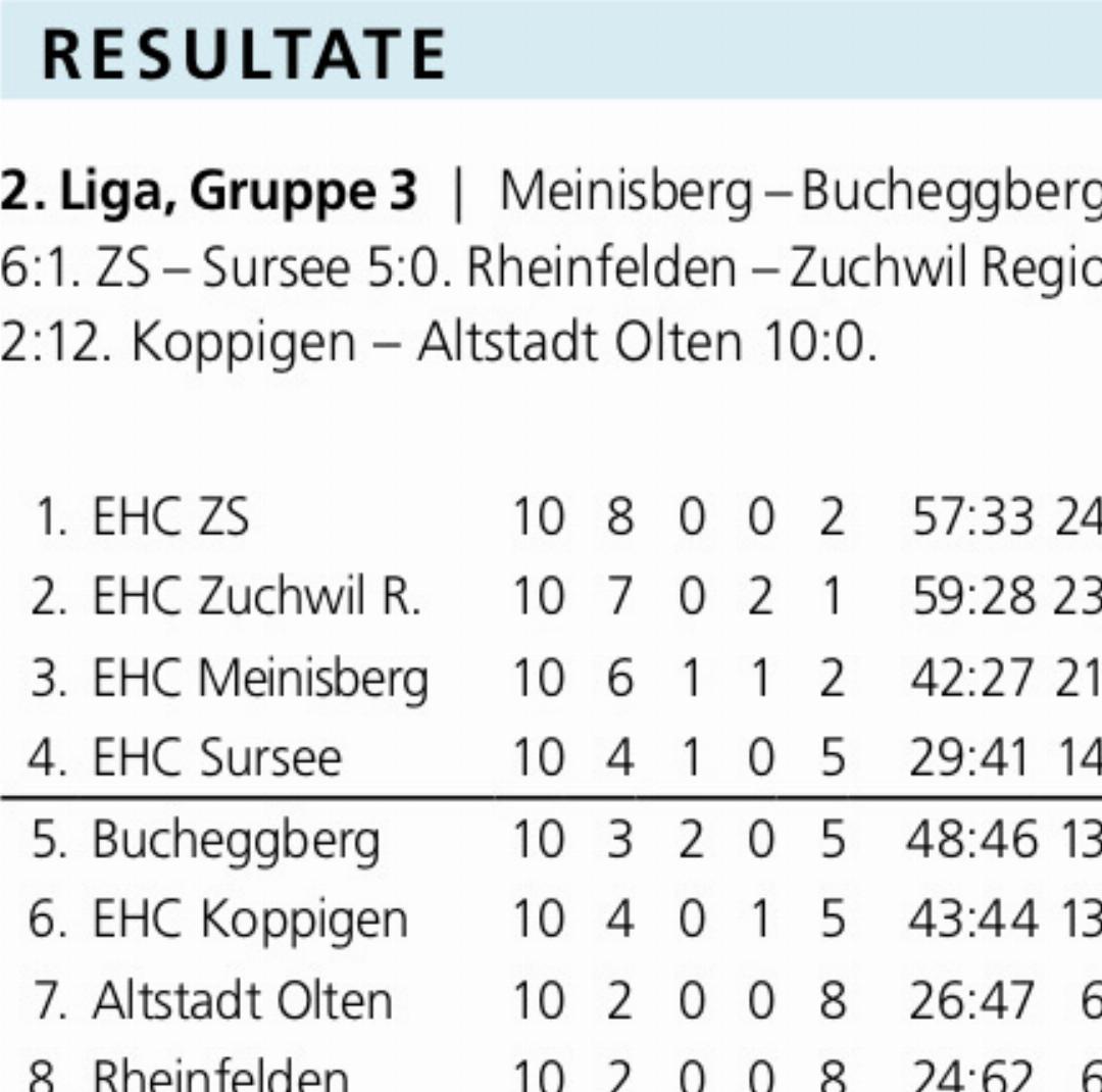 Dank der drei Punkte hat ZS die Tabellenführung in der Gruppe 3 verteidigt und führt die Rangliste mit einem Punkt Vorsprung vor dem EHC Zuchwil Regio an. Dahinter folgt Meinisberg als letztes Team des dem Rest der Liga enteilten Spitzentrios. Dahinter geht es in den letzten vier Runden der Regular Season zwischen Sursee, Bucheggberg und Koppigen um den 4. Rang, der als letzter die Qualifikation für die obere Masterround der ersten vier Teams und damit auch die vorzeitige Play-off-Qualifikation bedeutet. Von den hinteren vier Teams werden sich nur noch zwei ins «Saisonschlussturnier» spielen können.