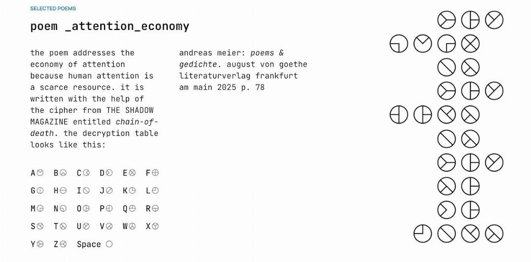 Computerkunst umfasst Kunstformen wie Musik, Poesie oder Grafik, die mithilfe eines Computers erzeugt werden. Unter generativer Lyrik versteht man programmierte Gestaltung: Eine Maschine wird mit Instruktionen, Fragen oder Formeln gefüttert und erzeugt daraus Gedichte oder «Nonsense Poems». Aus Buchstaben, Zahlen oder Symbolen entstehen so – zufallsgeneriert oder nach Algorithmen – unterschiedliche Muster als Output.